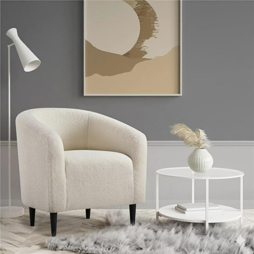 बाउकल फैब्रिक - हमारे बाउकल फैब्रिक की मुलायम बनावट का आनंद लें जो अतिरिक्त आराम और समर्थन जोड़ता है। अद्वितीय लुक और आकर्षक स्पर्श के लिए हस्तनिर्मित।