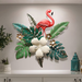 Modern Tropical Flamingo Metal Wall Art – Red Bird & Green Leaf Design