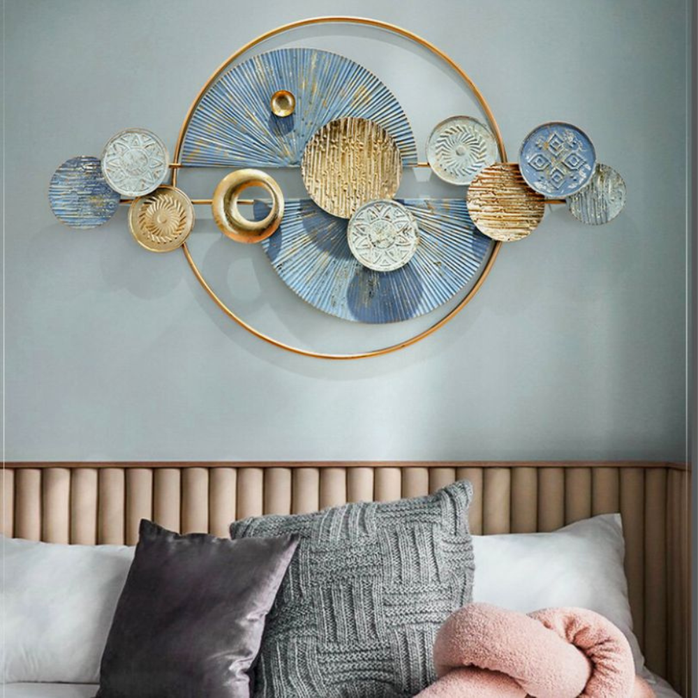 Modern Circular Design Soft Blue & Golden Metal Wall Art