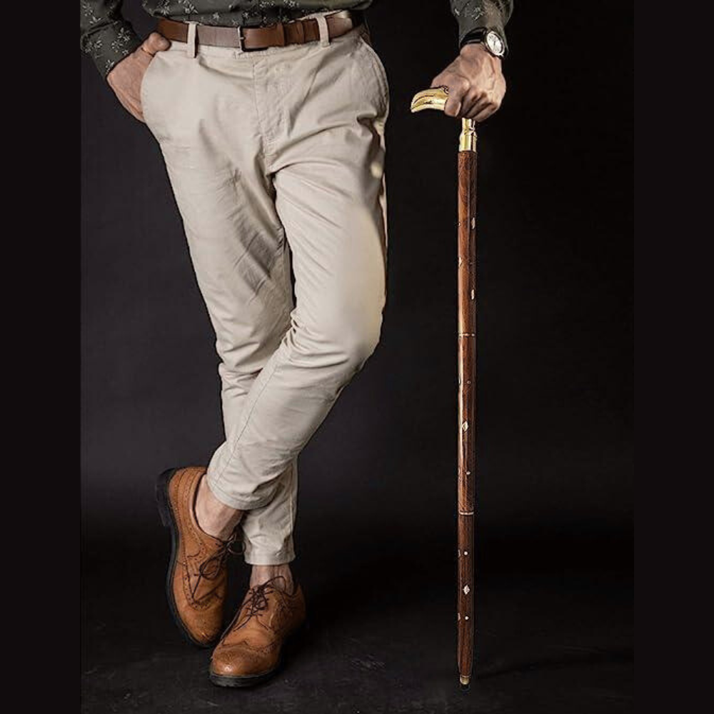 प्राचीन पीतल डिज़ाइन हेड हैंडल विंटेज स्टाइल लकड़ी की वॉकिंग केन स्टिक