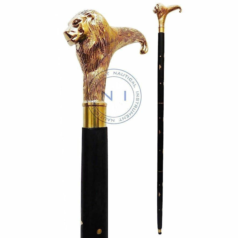 Antique Brass Design Head Handle Vintage Style Wooden Walking Cane Stick - WoodenTwist