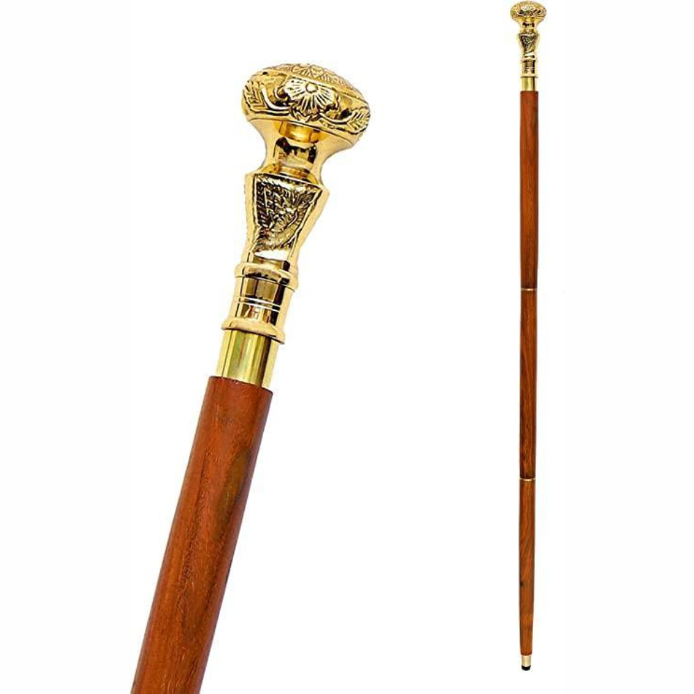 Antique Brass Design Head Handle Vintage Style Wooden Walking Cane Stick - WoodenTwist
